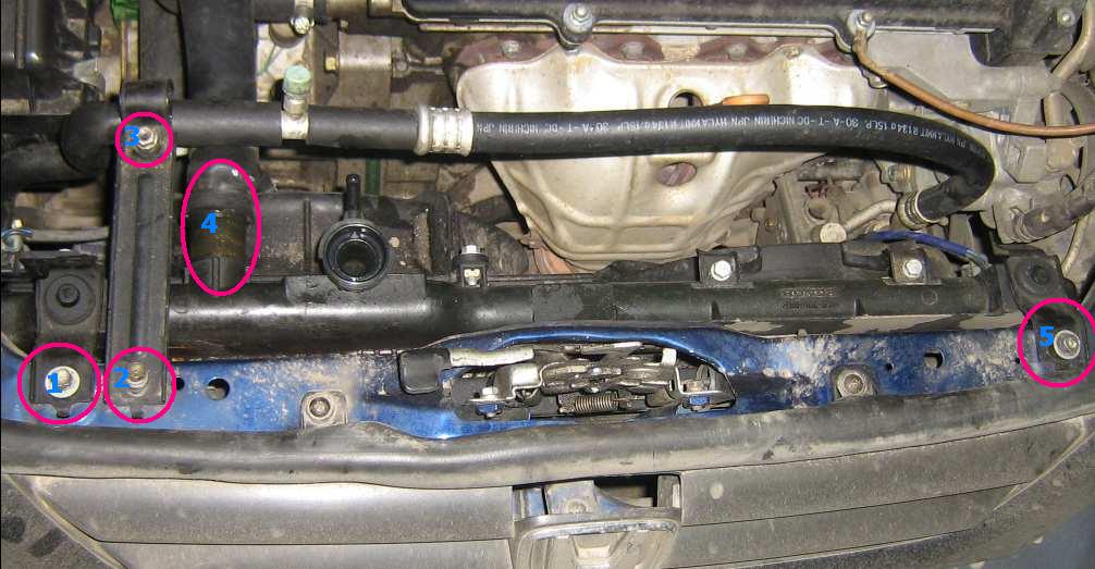 2. 1,2,3,5 откручиваем ключом 10 на 12, и снимаем крепление...