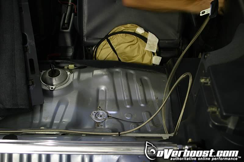 Для начала нам нужно найти, где разместить балон с закисью. В каждой машине это место будет разное. В этом цриксе мы его расположиле в багажнике с правой стороны. Поставьте крепления и наметьте маркером точки, где будете сверлить отверстия для болтов крепления. Дальше останется просверлить отверстия и прикрутить крепления. Имейте ввиду, что более высокое крепление должно быть спереди машины, чтобы при резком ускорении вся закись была в распоряжении. Как только с этим закончите - прикрутите шланги и прокиньте их через салон в двигательный отсек. С помошью хомутов закрепите везде где можно линию.